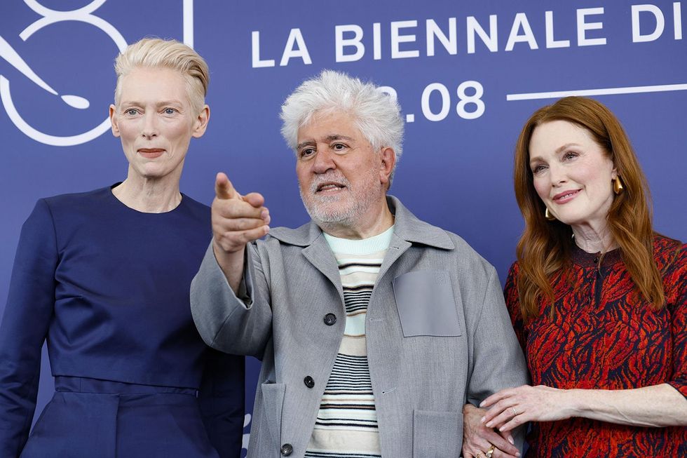Tilda Swinton ha già lavorato con Pedro Almodóvar al cortometraggio presentato sempre al Lido The human voice (2020). «Pedro è sempre stato al centro del cambiamento culturale. Non avrei mai pensato un giorno di poter far parte del suo spazio», dice l’attrice britannica. «In passato gli dissi: “Io per te imparerei lo spagnolo”. Ed eccoci, oggi:, ha vestito noi due rosse dei suoi colori», con riferimento a lei e Julianne Moore. «È stato un grande privilegio».