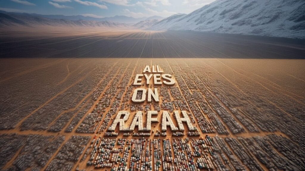 È diventata virale una storia Instagram che diffonde l’immagine «All eyes on Rafah». Lo slogan punta a sensibilizzare su quanto sta avvenendo nell’insediamento di Rafah, nella Striscia di Gaza, dove domenica 26 maggio un bombardamento da parte di Israele ha provocato un incendio e decine di vittime, nonostante la precedente richiesta dell’ONU di non intervenire militarmente in questa zona della Striscia.