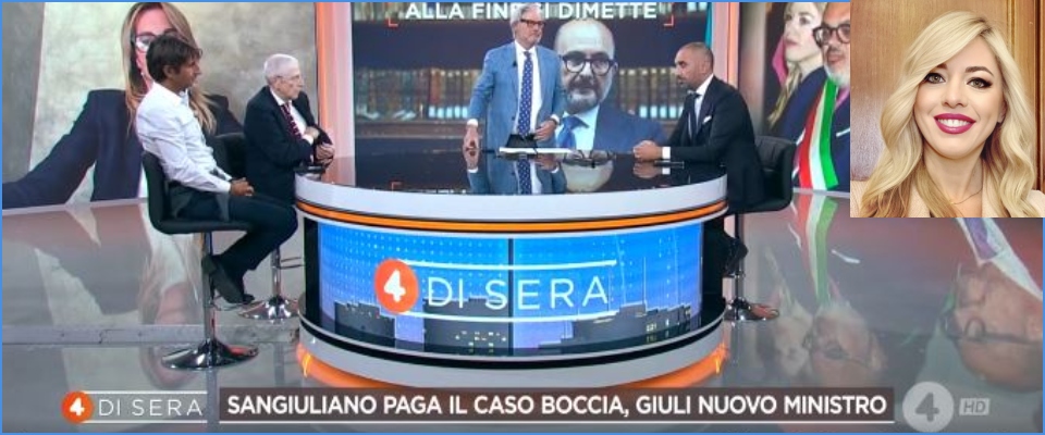 Si è tenuto a debita a debita distanza di sicurezza, ma alla fine, a sipario calato, da dietro le quinte di 4 di sera, il programma condotto da Paolo Del Debbio in access prime-time su Retequattro, parla anche l’ex marito della «signora Boccia, non dottoressa Boccia, come tiene a sottolineare l’uomo in uno dei nei