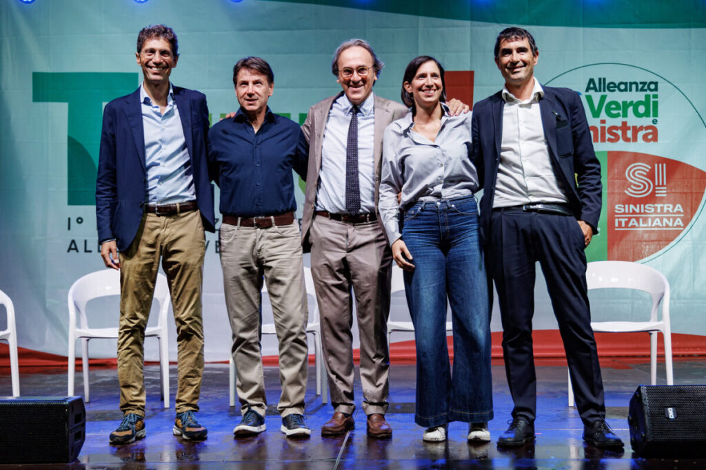 “Coalizione bagnata, coalizione fortunata… e piove, governo ladro”. Esordisce così Nicola Fratoianni, che da padrone di casa accoglie con Angelo Bonelli, sul palco della festa nazionale di Avs, a Roma, la segretaria del Pd Elly Schlein, il presidente M5S Giuseppe Conte e il leader di Più Europa Riccardo Magi. “Le persone si aspettano da noi un’alternativa