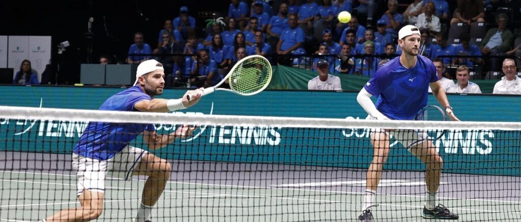 Dopo il Brasile l’Italia batte anche il Belgio nella quarta giornata del Girone A delle Davis Cup Finals a Bologna. A dare il punto decisivo agli azzurri è la coppia di doppio Simone Bolelli e Andrea Vavassori che hanno superato i belgi Sander Gille e Joran Vliegen in due set 7-6, 7-5.
