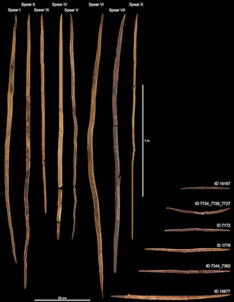 Tra questi manufatti in legno, i più grandi conosciuti del Pleistocene (da 2,58 milioni a 11.700 anni fa), c’erano almeno 10 lance, 7 bastoni da lancio e 35 utensili domestici. Erano tutti intagliati in legni noti per essere sia flessibili che duri, tra cui abete rosso, pino e larice.