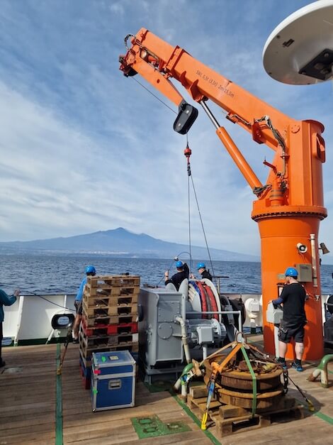 La missione è stata anche l’occasione per sperimentare una tecnica finora mai applicata ai vulcani che ha previsto l’installazione di due piezometri per misurare le variazioni di pressione e di temperatura dell’acqua contenuta nei primi 5 metri di sedimento sul fondo del mare in prossimità della nota faglia di Acitrezza. Misure che hanno consentito di rilevare la deformazione attiva sulla prosecuzione della faglia fino a 1200 metri di profondità.