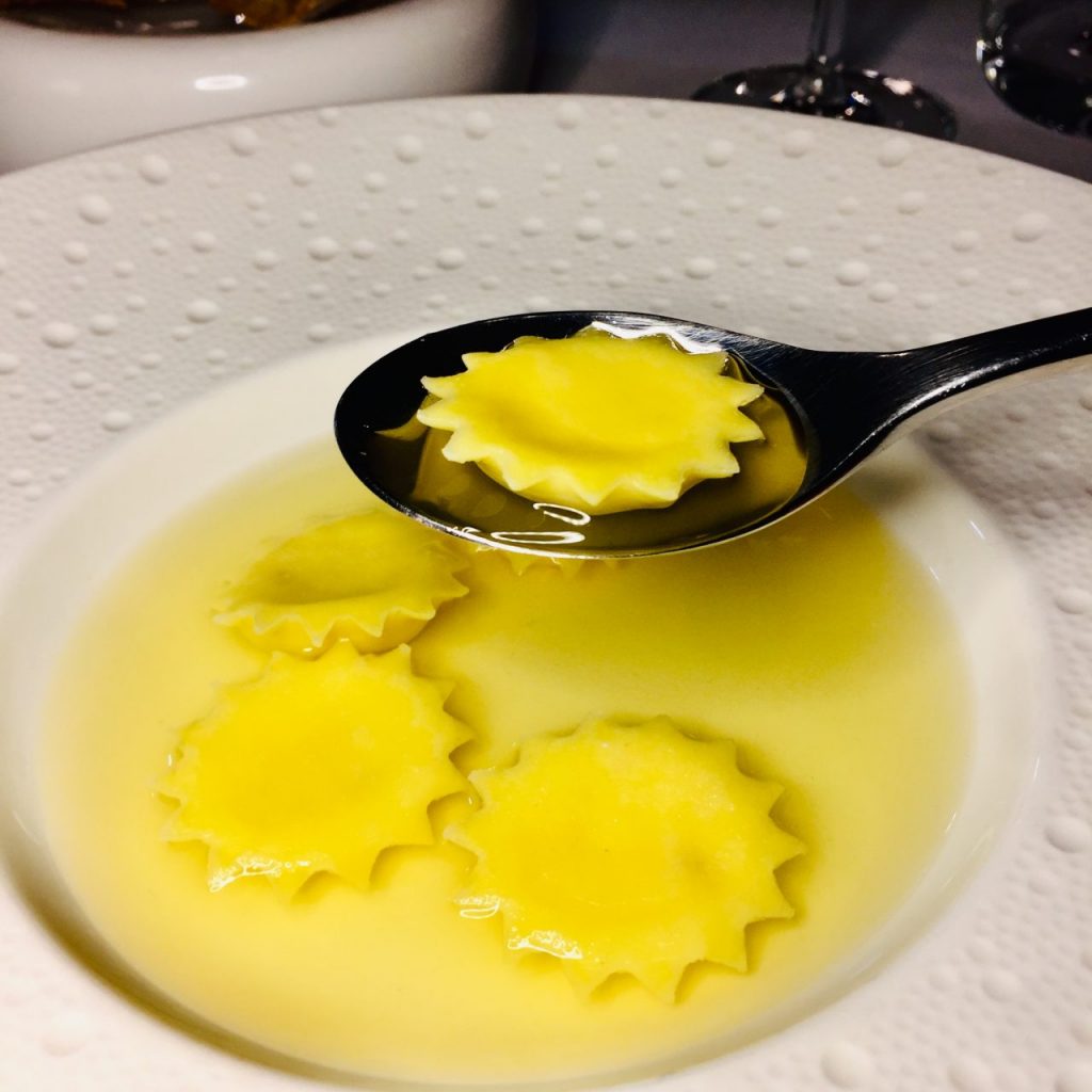 Tortelli di ricotta fresca di pecora, acqua di tre pomodori e mandorle tostate, Unitum Restaurant