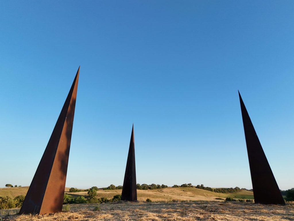 Una delle novità più importanti del 2024 è stata l’inaugurazione di “Senza titolo (Prospettiva Cielo)” di Mauro Staccioli, situata nei pressi di Capalbio e aperta a inizio luglio, dopo essere stata dimenticata per mesi in un magazzino milanese. Questa scultura monumentale, composta da tre elementi piramidali alti nove metri disposti in cerchio, è un esempio di come Hypermaremma, che ha recuperato l’opera, riesca a creare una connessione tra l’arte e il paesaggio agricolo. Staccioli, scomparso nel 2018 e noto per le sue opere che interagiscono con l’ambiente, ha realizzato una struttura che si inserisce perfettamente nel contesto naturale, invitando i visitatori a riflettere sul rapporto tra arte, natura e spazio.