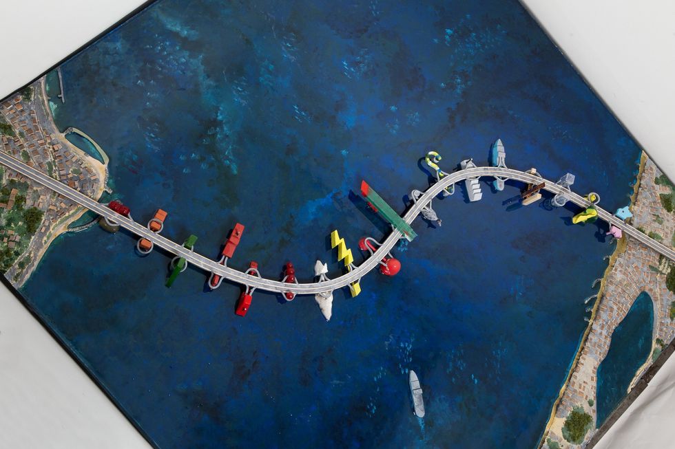 Poi ho iniziato a curare sue mostre, a Firenze, a Milano, a Padova, alla Biennale di Venezia, all’Expo di Milano 2015, al Palazzo Ducale di Mantova. Sempre con mio divertimento per la sua inesauribile fantasia. Intelligenza pura. Era rassicurante sentirlo sui casi della cultura e della politica italiana, con osservazioni originali come quelle sul ponte di Messina come occasione di creatività e di invenzione fuori dalle prevedibili linee diritte di congiunzione fra i due Capi, un percorso di fantasie e di miraggi, con soste, giardini, un percorso come un sogno, secondo l’idea dell’arabesco suggerita da Ennio Flaiano, più utile di qualunque linea retta. Un ponte della memoria, del mito della storia, più che la memoria di un ponte, come altrove ve ne sono. Un ponte come meraviglia del mondo. Continuamente stupefacente, sorprendente, imprevedibile, un ponte fra civiltà, tra Nord e Sud, un ponte che unisce mondi lontani.