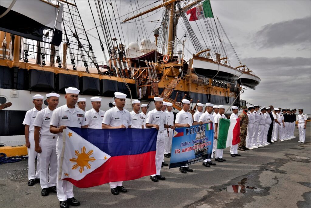 L ‘Amerigo Vespucci, storico veliero e Nave Scuola della Marina Militare, è arrivata nell’arcipelago delle Filippine a Manila, 23^ tappa del Tour Mondiale, dopo la sosta a Tokyo, percorrendo quasi 2.000 miglia in 15 giorni di navigazione. Si tratta della prima visita della nave nella capitale delle Filippine. Ad accogliere Nave Amerigo Vespucci in porto a Manila, l’Ambasciatore d’Italia a Manila S.E. Davide Giglio e autorità rappresentanti della Marina Militare delle Filippine. Anche a Manila migliaia di visitatori si sono iscritti per salire a bordo del Vespucci. L’Amerigo Vespucci, custode delle più antiche tradizioni navali e marinare da oltre novant’anni – è uno dei simboli più conosciuti dell’Italia nel mondo.
